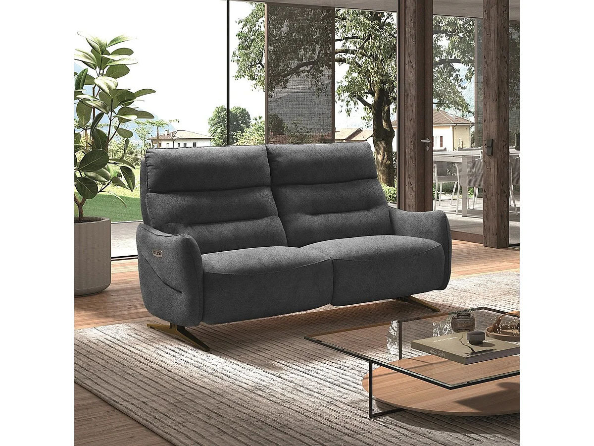 Ensemble 2 Canapés Fixe 2 Places et Relax Manuel Tissu Gris de la gamme Huesca.